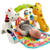 Малыш хлопает и хватает игрушки на игровой панели, что активирует огоньки, звуки, музыку и движение (жираф раскачивается, лягушка играет с малышом в веселую игру «ку-ку»), что развивает навыки моторики малыша.